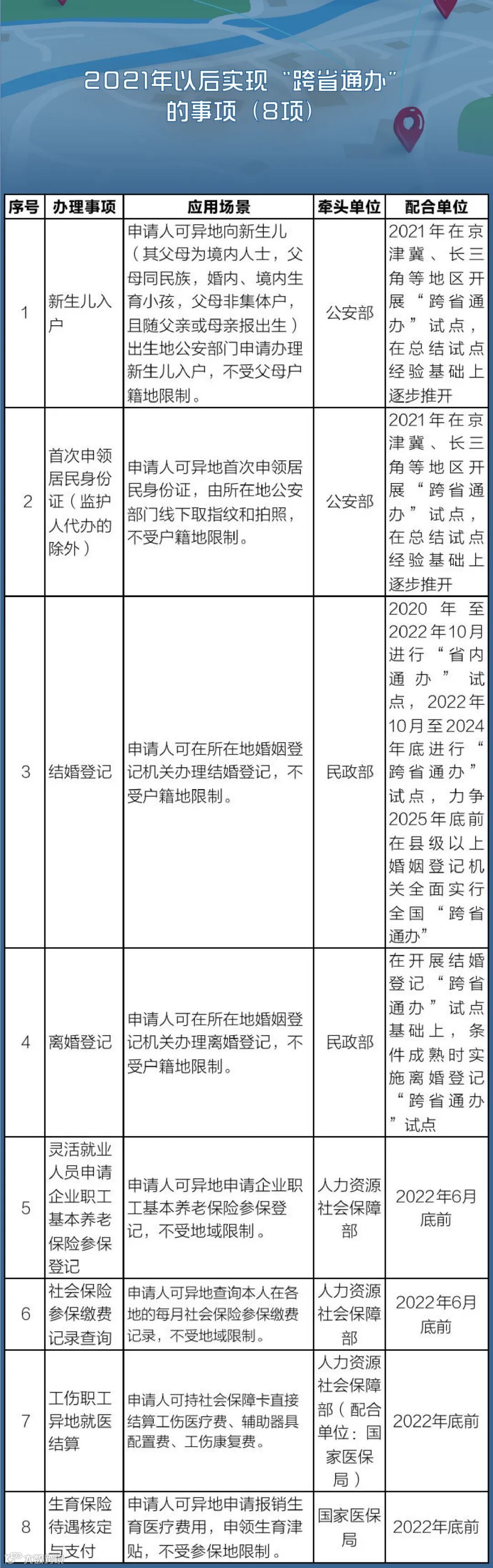 日前,国务院办公厅印发《关于加快推进政务服务“跨省通办”的指导意见》,对140项高频政务服务事项“跨省通办”给出具体时间表、路线图,其中58项要在2020年底即实现“跨省通办”,一起来看!