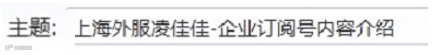 空白标题是十分不礼貌、不专业的表现,所以你要言简意赅地把你此封邮件的主题概括后作为标题。很多情况下,邮件主题就是一个名词,以此来表示此封邮件的主题。例如: