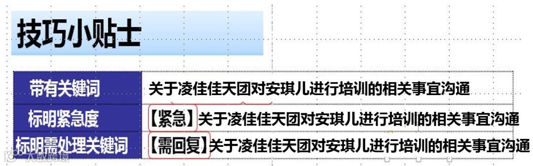 一封邮件的标题尽可能只针对一个主题,不在一个标题中谈及多件事情。可以让对方在电脑的一幅画面中看完你邮件标题,而尽量不要让outlook要用上“…”才能显示完你的标题。