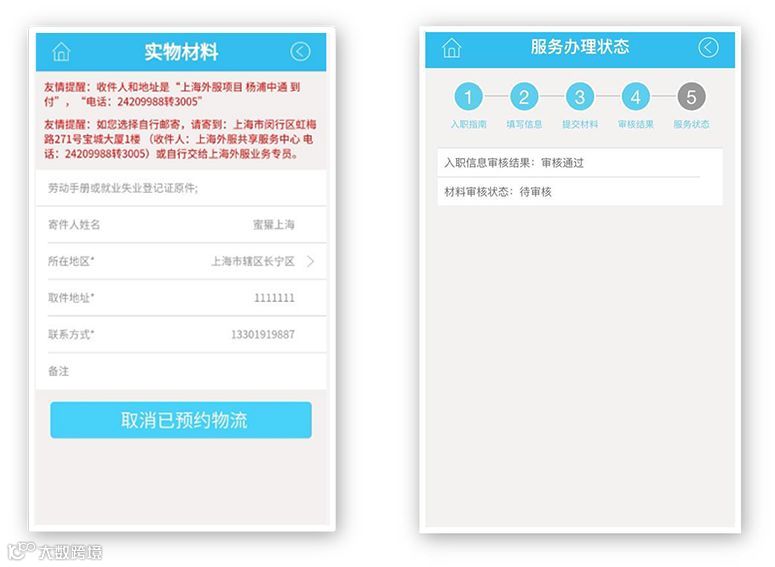 第五步:预约收取实物材料,所有材料提交后,可跟踪关注办理状态。