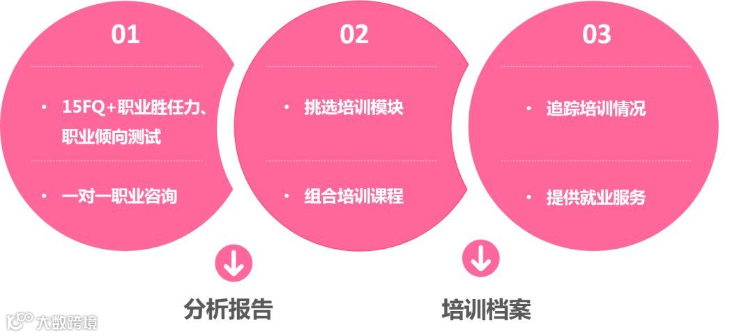 人员招聘+就业辅导→ 人才测评→ 岗前培训+实训→ 实现就业