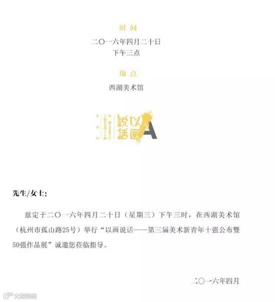 明天下午3点,在西湖美术馆,第三届“以画说话——美术新青年”10强颁奖典礼将隆重举行,期间将角逐出美术新青年10强。