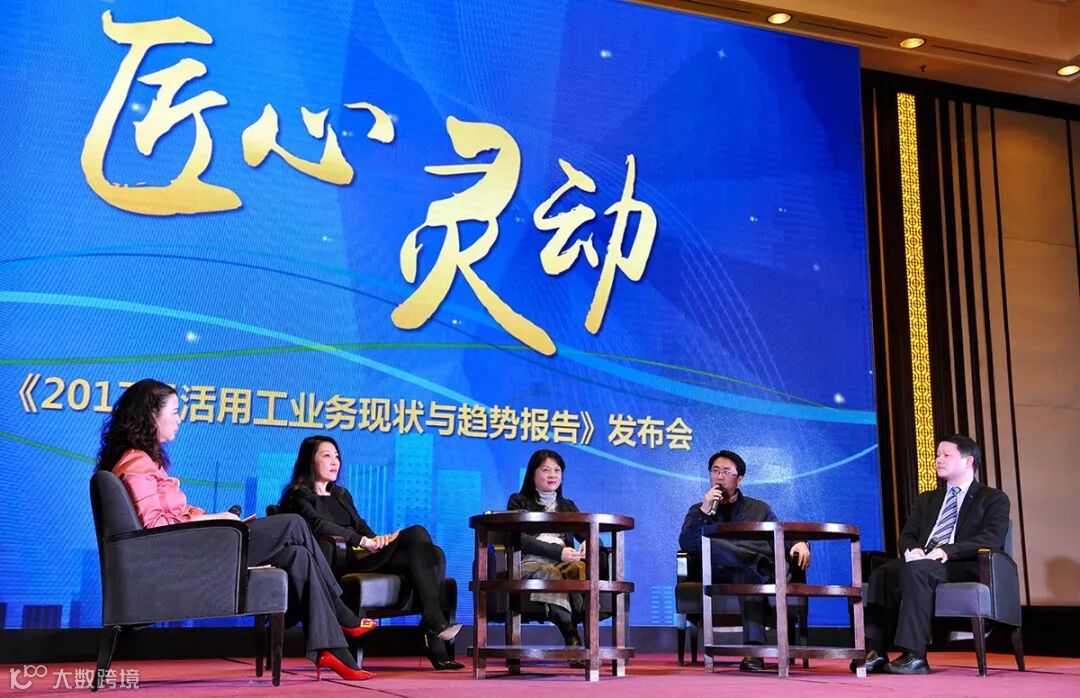 嘉宾右起为:上海外服招聘及灵活用工事业部灵活用工部副总经理滕中伟、上海市公共行政与人力资源研究所所长李国虹、唐纳森(中国)投资有限公司亚太地区人力资源总监张涛、上海春秋国际旅游(集团)有限公司人事总监过音群,主持人:上海外服招聘及灵活用工事业部业务发展部总经理胡远露