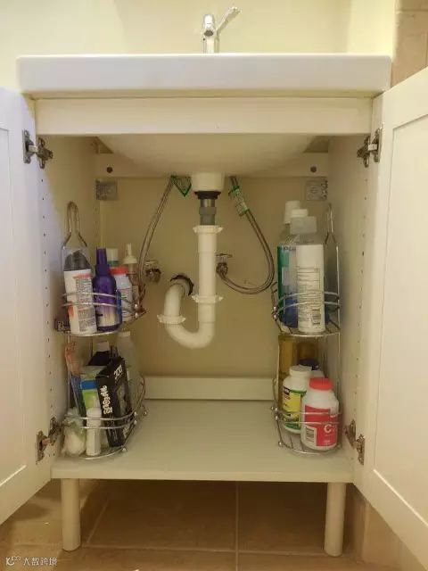 b.把清洁地面和洗手间的用品放到面池下方能够节约大量空间。