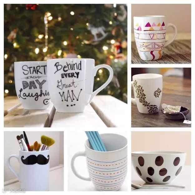 纯白马克杯可谓涂鸦界的潜力股。从最爱的座右铭到最萌的八字胡,一支油性笔就能全搞定。