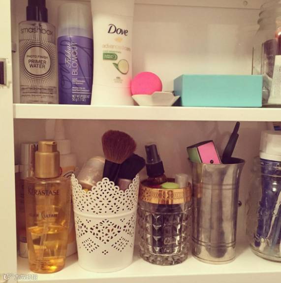 c.对于一个小浴室而言,化妆品能够和装饰品合二为一节省空间又卫生。