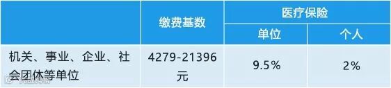 上海市2018年度职工社会保险缴费基数上、下限分别调整为21396元和4279元,医保缴费标准如下: