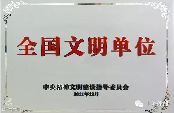 上海外服荣获了”全国文明单位“称号,并蝉联殊荣至今。