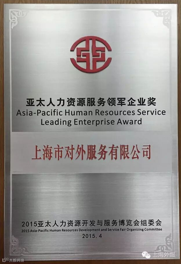 基于上海外服在人力资源服务行业的领先探索和卓越贡献,中国国际人才交流大会特别授予上海外服“亚太人力资源服务奖之领军企业奖”。
