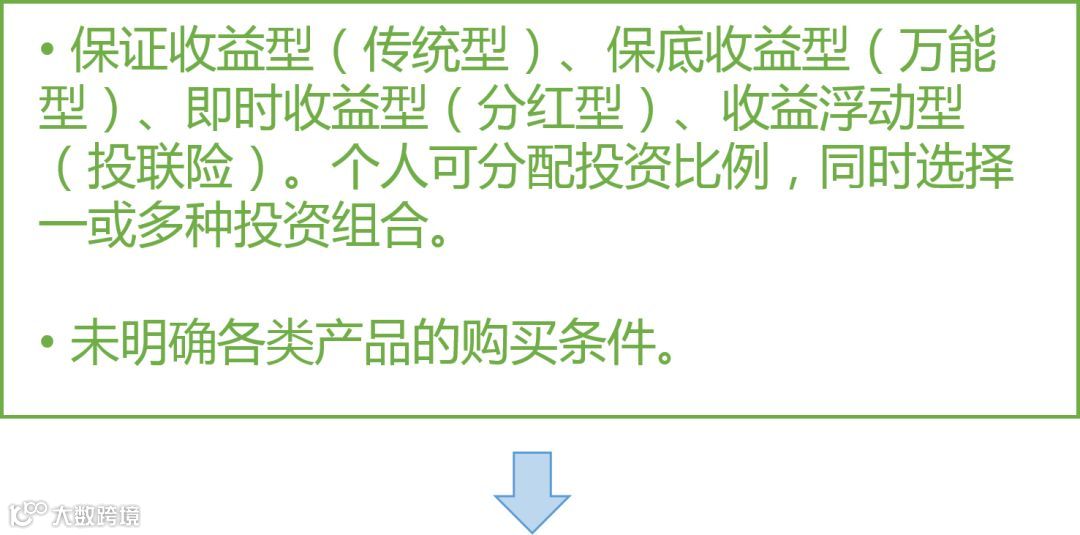 银行、基金也有年金产品,此处,政府用“年金”一词为该政策埋下伏笔,但银行、基金不能承诺保底是既有规定,与养老的概念相悖,未来如何参与我们拭目以待。
