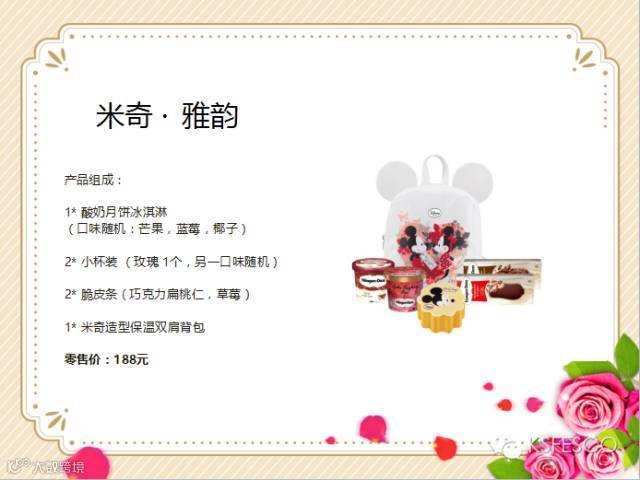 外服此次与哈根达斯合作推出三款独家限量产品,其中有2套迪士尼特别限量版冰淇淋月饼礼包,雅韵米奇冰淇淋月饼礼包和尊尚米奇冰淇淋月饼礼包!他们拥有可爱的米奇妙外衣,还有甜丝丝冰爽爽的米奇妙内心。