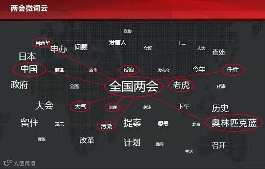 上图是今天下午三点政协发布会期间的热词监测截图。“吕新华”、“老虎”还有“落马”等被放大并凸显出来。