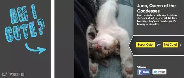昨天,以轻松娱乐内容见长的社会化新闻聚合平台BuzzFeed上线了他们旗下的第二个独立应用“Cute or Not”----这是一款通过简单操作就可以让用户在手机上饱览可爱动物照片的应用;该产品身上最明显的“BuzzFeed”烙印就是你可以对那些照片中的萌宠动物们进行投票,得票最高者将出现在BuzzFeed的头条并将其广泛分享出去。