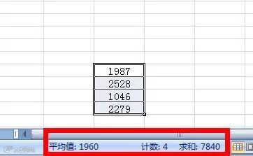 选中数列→表格最下方状态栏中,自动生成求和、平均值、和计数显示。