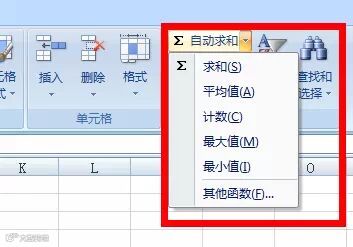 点击“自动求和”键→默认为自动求和;其他函数下拉菜单获得。