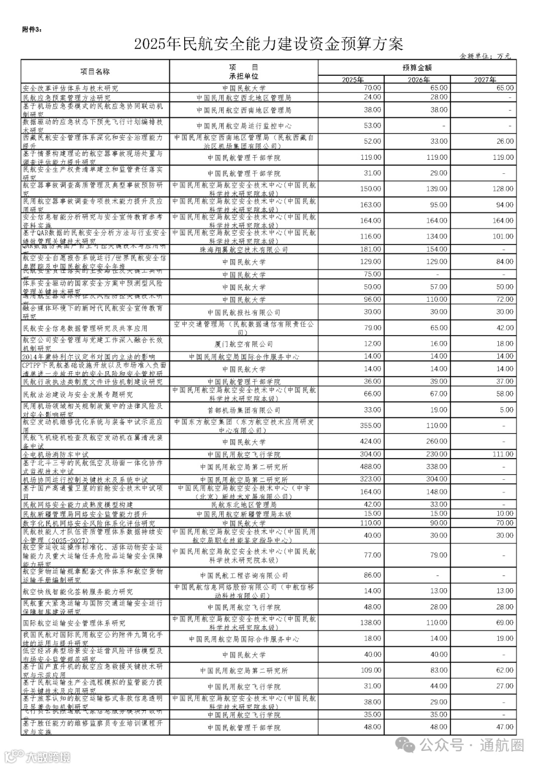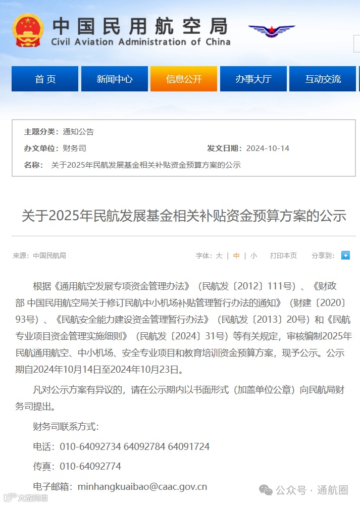10月14日,民航局财务司就2025年民航发展基金相关补贴资金预算方案进行了公示,包括2025年通用航空发展专项资金预算方案、2025年中小机场补贴资金预算方案、2025年民航安全能力建设资金预算方案、2025年民航教育培训专项资金预算方案,共计4个方案,公示期自2024年10月14日至2024年10月23日。根据此次公示的2025年通用航空发展专项资金预算方案,共有208家单位拟获得补贴7.1688亿元,与2024年的方案相比有较大增长(2024年民航发展基金相关补贴资金预算方案公示)。其中,拟补贴金额在1000万元以上的有15家,青岛直升机航空有限公司的拟补贴金额更是超过1亿元——1.1409亿元。