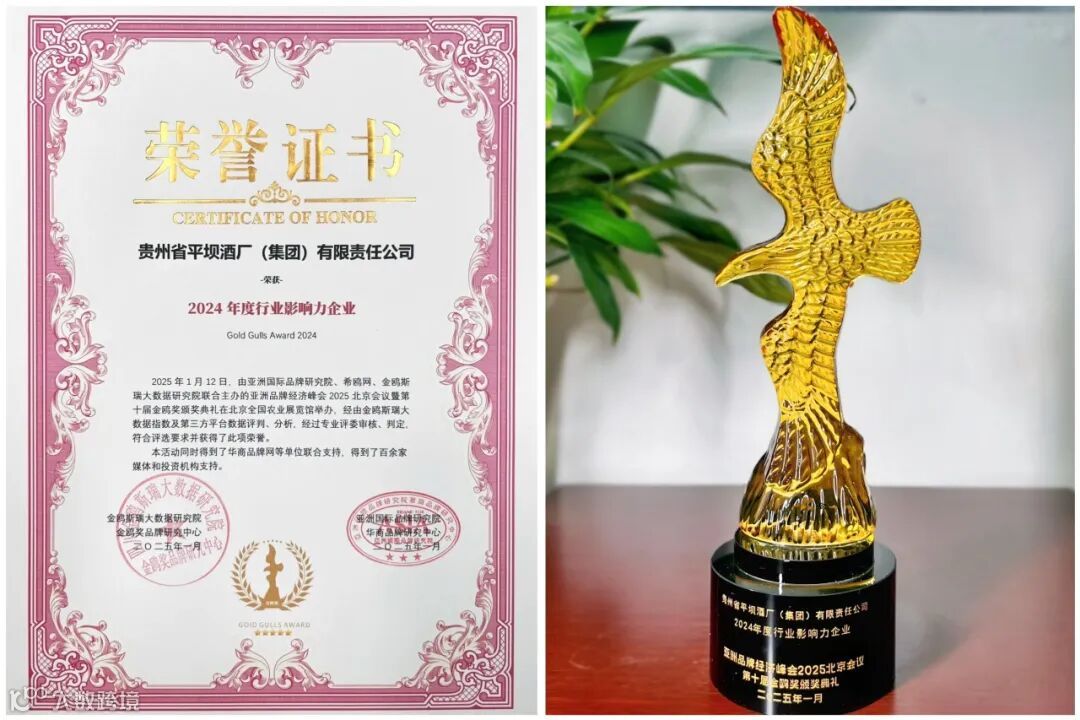 在备受瞩目的第十届金鸥奖颁奖典礼上,贵州省平坝酒厂(集团)有限责任公司荣获“2024年度行业影响力企业”称号。这个奖项的获得,突显了平坝集团多年来在白酒行业的卓越发展,是对其在推动行业发展、名酒复兴以及提升品牌影响力方面所做贡献的肯定。