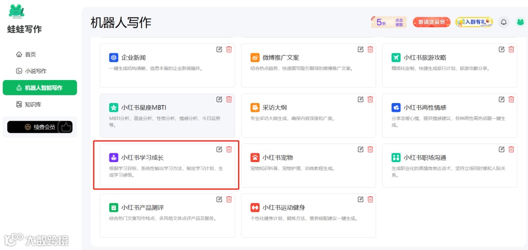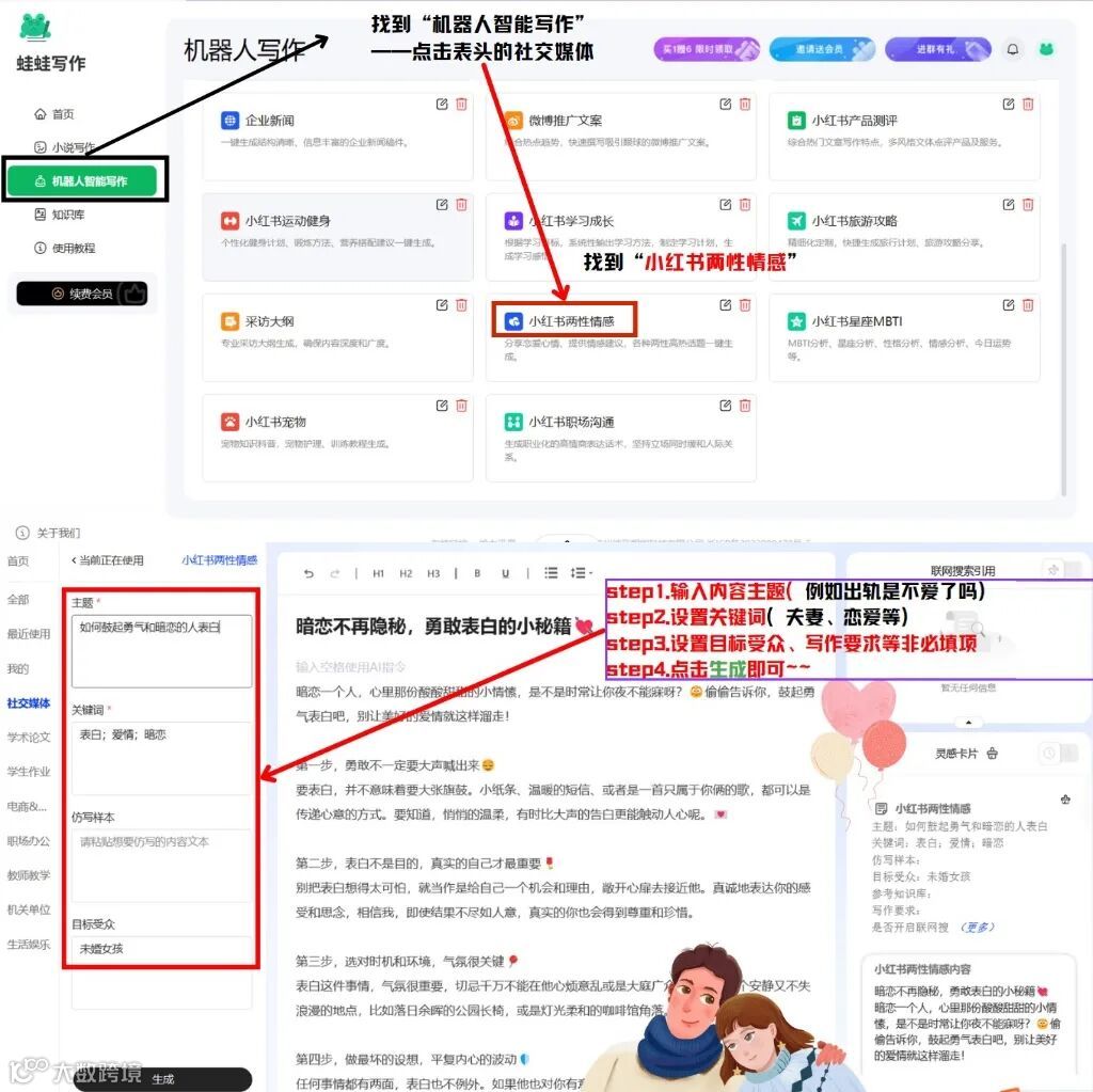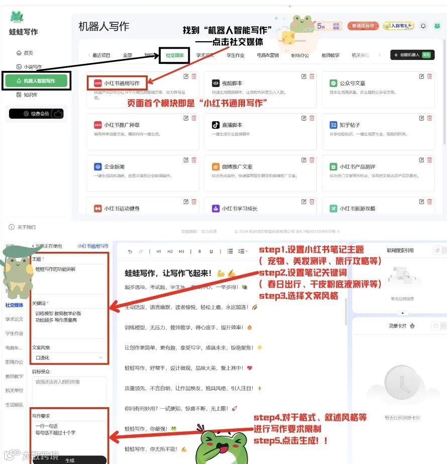 还有大家都学用了蛙蛙写作写小红书文案