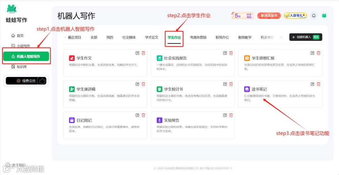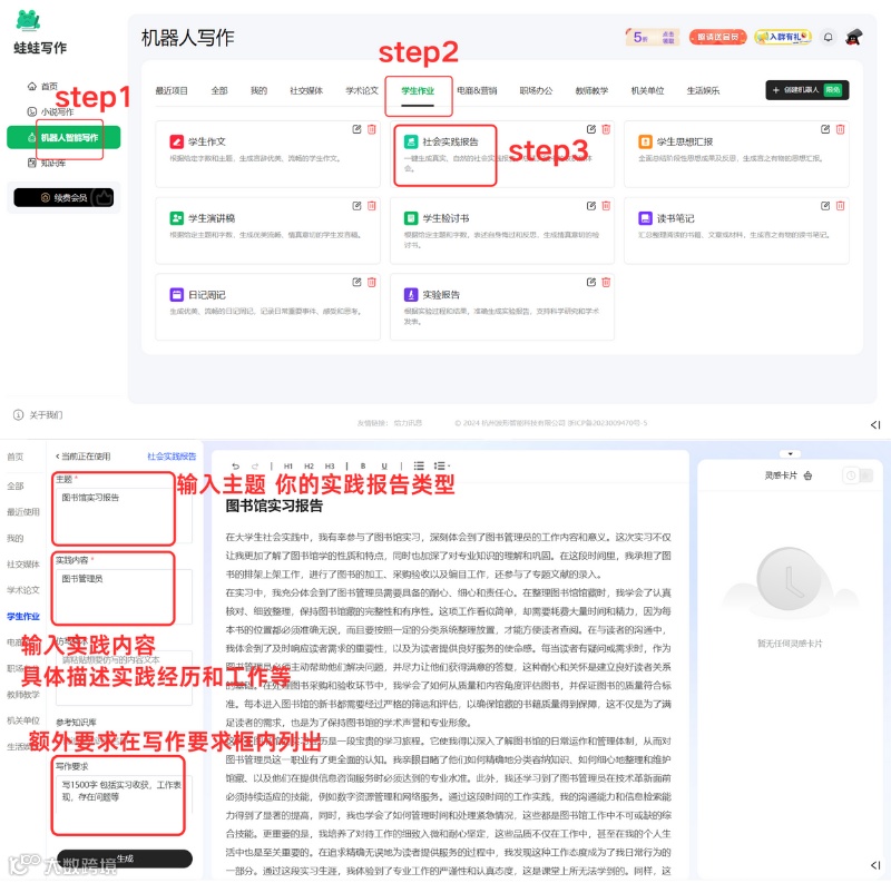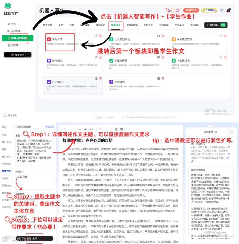 蛙蛙写作一键生成!