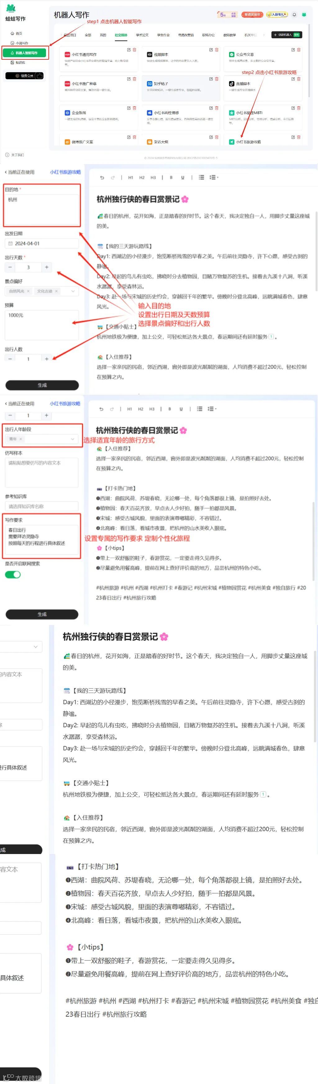 想请蛙蛙帮他做一个玩转杭州春日攻略