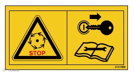 禁止接近机器部件。机器的活动部件可导致严重或致命伤害。进行维护工作之前,请关闭发动机并拔下点火钥匙。等待所有机器部件都停止。