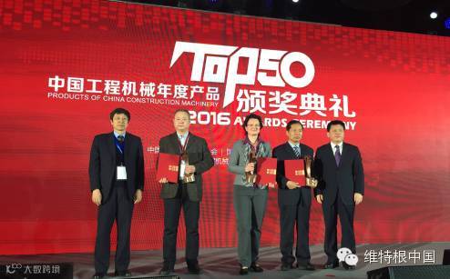 2016年3月31日,“2016工程机械产品发展(北京)论坛暨中国工程机械年度产品TOP50颁奖典礼”在北京北辰洲际酒店如期举行。来自中国工程机械工业协会及下属分支机构、国家工程机械质量监督检验中心、相关行业协会以及工程机械制造企业、施工企业、科研机构、高校、新闻媒体的200余位嘉宾参加了这次年度盛会。维特根集团旗下维特根 W 50 H新型冷铣刨机入选“2016年中国工程机械TOP50”年度产品,并凭借其多样化的应用及实际施工应用中的出色性能表现获得应用贡献金奖。