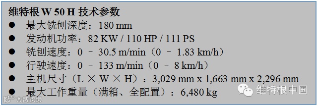 在本次行业盛会上获得大奖的维特根W 50 H型冷铣刨机,凭借其优异的性能及品质在小规模路面养护维修项目中表现出色。来自奖项评审专业委员会的专业评定认为,W 50 H在产品研发中充分考虑到了中国市场的应用需求,对产品的性能和技术特点进行了量身打造,其极小的转弯半径及铣刨半径,标配的四轮设计及全轮驱动系统,以及强有力的发动机和铣刨系统,使得设备的铣刨能力、机动性和地形适应能力都得到了优化,深受中国用户好评。