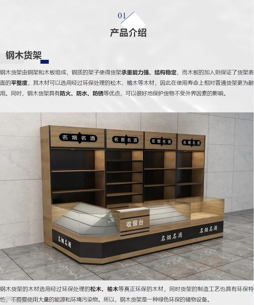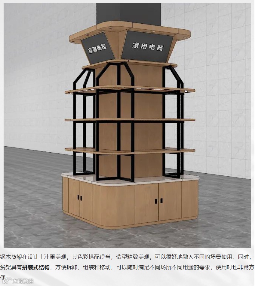 精心设计的钢木制货架将现代工业风与自然木质温馨融合,激发消费的空间无限可能性,更能让各类展品在独特背景下脱颖而出