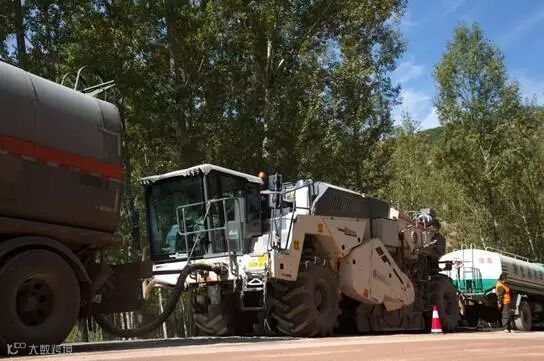 施工单位采用的维特根WR 250冷再生机,是今年年初从德国引进的最新设备,具有无可比拟的优越性能:包括广阔的应用范围、完美的人性化设计、自动化的功能控制、完美的视野与摄像、杰出的越野机动性、灵活的转向系统、高效动力与自诊断系统、高效铣刨与拌合性能、以及精确的喷洒系统。