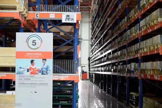 接到的配件直接在收货区录入 SAP 系统,然后分配到正确的地点。归到生产部的组件根据其大小和重量的不同,分别存储在高层货架或现代化的、配升降系统的中心小件仓区,而零配件则直接运到同样装备升降系统的零配件仓库。