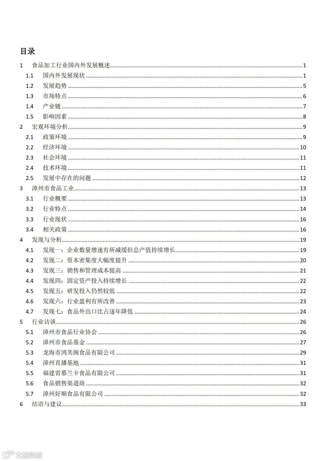 通过对采集的数据的进行全面分析,我们发现了包括漳州市企业数量增速有所减缓、行业资本密集度增加、销售和管理成本提高、固定资产投入增加、行业研发投入较低、行业盈利情况改善以及食品外出口占比降低等本地行业现象,并且基于对现存问题和痛点的进一步分析,本报告针对性地提出了多点建议。