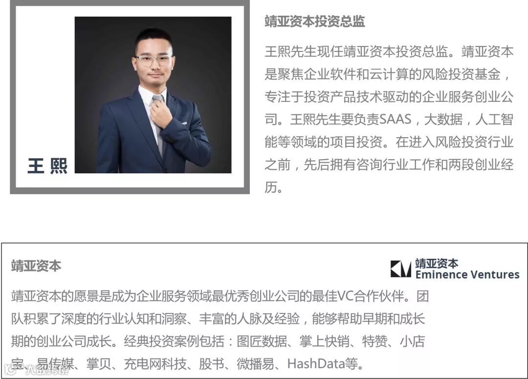 企业软件、企业服务、大数据、人工智能产业(早期至中期):王熙,靖亚资本