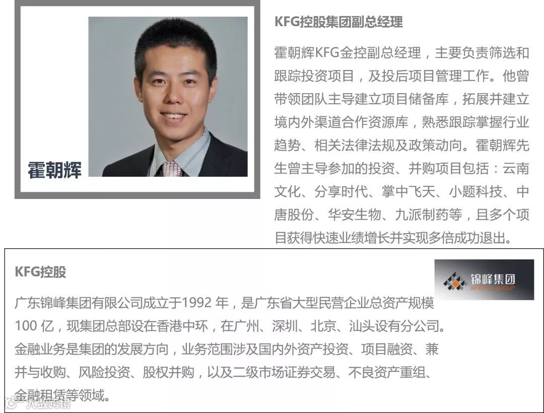 如果你的企业已经成熟且寻求PE或并购,和霍朝晖的交谈将使你受益匪浅。霍朝晖是KFG控股的副总经理,主导了云南文化、分享时代、中唐股份等知名项目的并购。