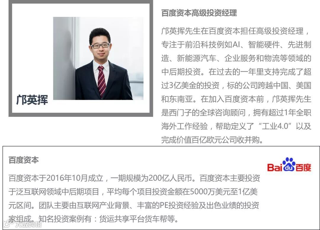 人工智能、智能硬件、先进制造、企业服务、无人驾驶产业(中后期):邝英挥,百度资本