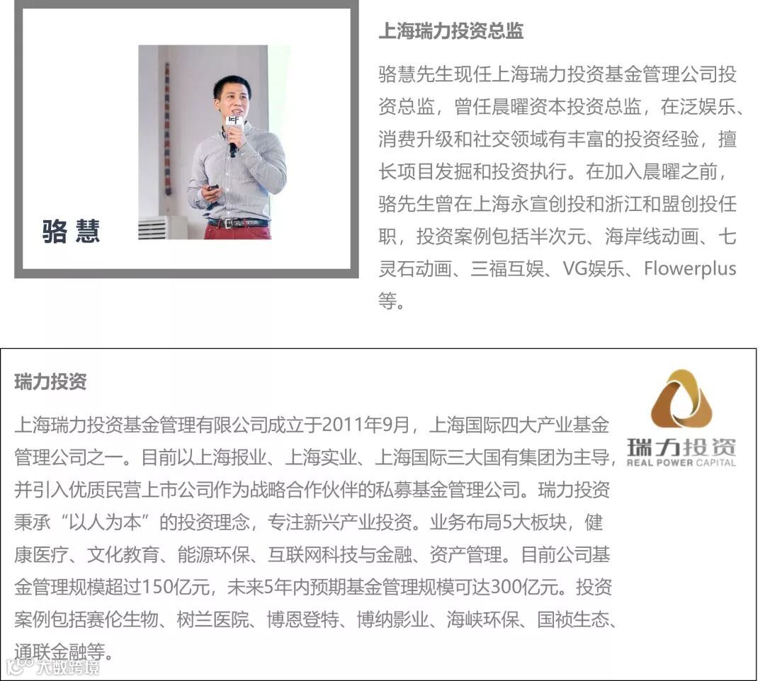 上海瑞力投资是上海国际四大产业基金管理公司之一,以上海国有资本为主要管理对象,基金规模超过150亿。骆慧在加入瑞力投资,任职于晨曜资本,是经验丰富的早期互联网、泛娱乐、消费升级领域投资人。
