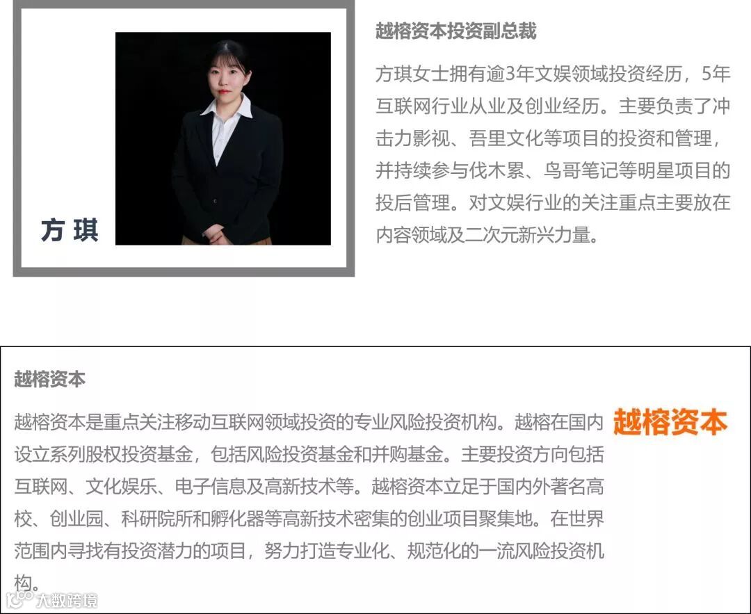 互联网、泛娱乐、新媒体产业(早期):张立超、方琪,越榕资本