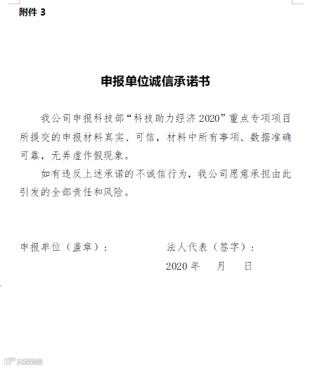 3、申报单位诚信承诺书