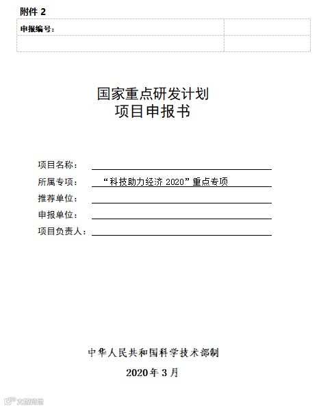 2、国家重点研发计划项目申报书(“科技助力经济2020”重点专项)