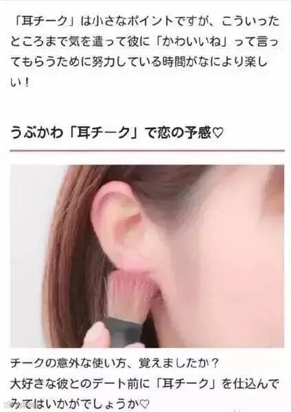 最近,在日本一种叫做耳チーク的独特化妆方式开始被大家关注,据说这种化妆方法可以提升恋爱运势哦!