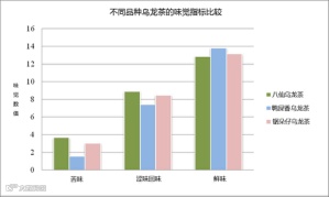 乌龙茶可提神、消滞深受广东人喜欢。电子舌测试数据显示不同品种制得的乌龙茶在滋味上也各有千秋,如鸭屎香苦涩味小,而鲜味突出,八仙与锯朵仔鲜味不相上下,在口感的苦涩上八仙则更胜一筹。