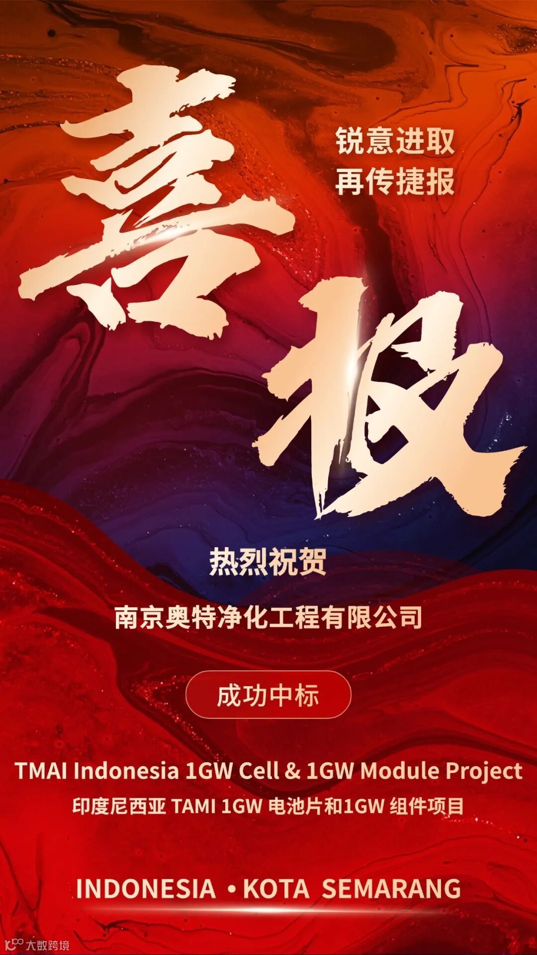 奥特净化在印尼市场再传捷报,成功中标天合光能 TMAI Indonesia 1GW Cell & 1GW Module Project(天合光能印度尼西亚1GW电池片和1GW组件项目),该项目是奥特净化继成功交付印尼东磁(东南亚新建年产2GW高效电池片工厂项目)后,在印尼市场取得的又一重要里程碑。此次中标不仅彰显了奥特海外市场的强大竞争力,也是奥特在东南亚战略布局中的又一突破。