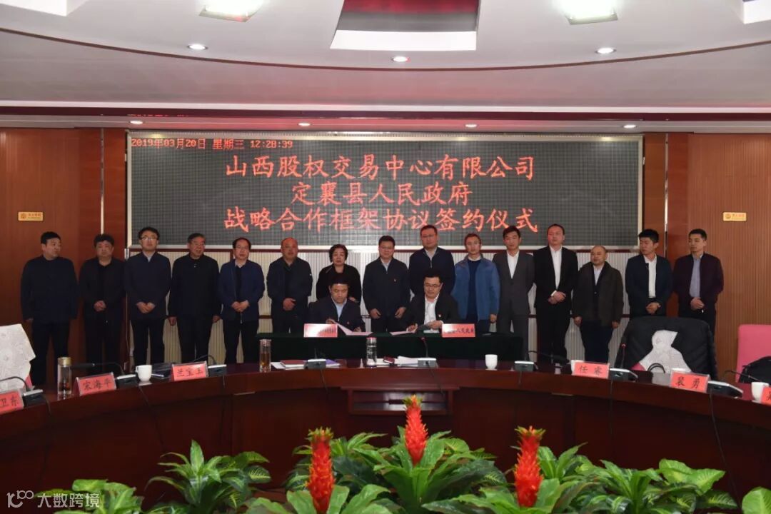 2019年03月20日,山西股权交易中心与定襄县人民政府达成战略合作。定襄县委书记张文斌、县长王建峰、中心总经理郭彪、县政府有关部门负责人、省再担保集团业务部门负责同志及中心会员机构参加了此次活动。