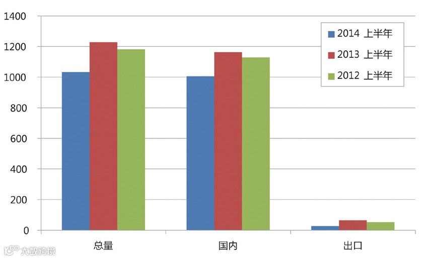 据统计,2014年上半年中国摊铺机主要17家生产企业共销售摊铺机1033台,同比2013上半年下滑15.9%;其中出口27台,比2013上半年65台同比下滑58.5%。