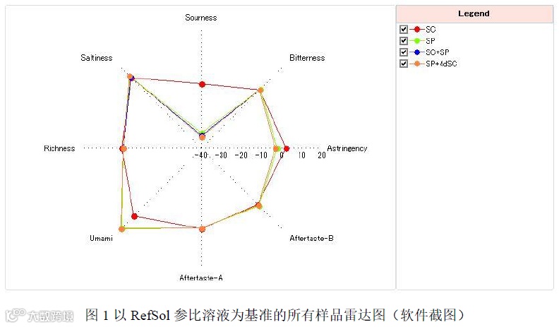 由此可见,所有的味觉传感器对该样品的区分性均很好。