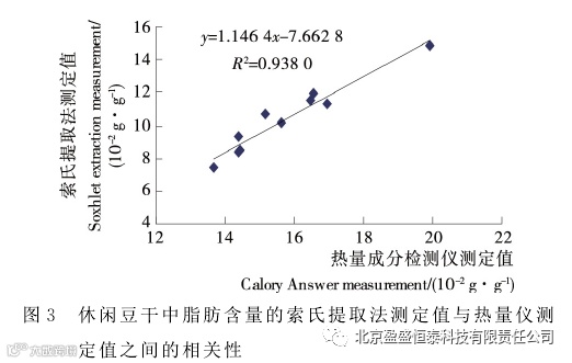 实验结果:以市售休闲豆干为原料,分别采用凯式定氮法、快速水分测定法和索氏提取法测定其蛋白质、水分和脂肪含量,再使用热量成分检测仪分别测定其含量,运用数学分析法对其检测模型进行校正,得到相应的校正模型。校正后热量成分检测仪能够快速、准确地检测休闲豆干中蛋白质、水分、脂肪的含量,为休闲豆干蛋白质、水分、脂肪含量的快速检测提供了新途径。
