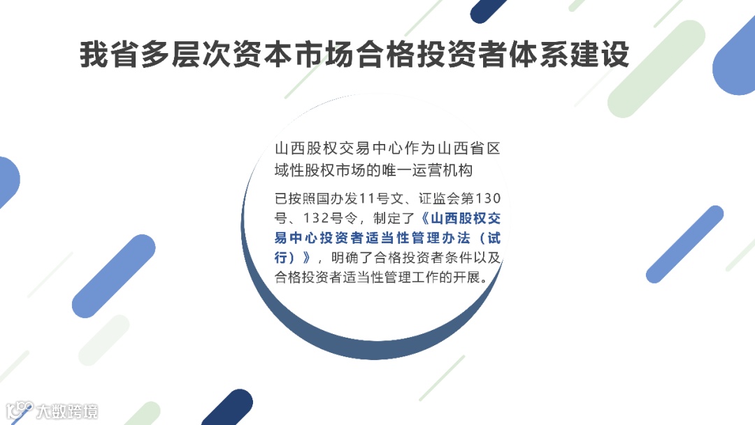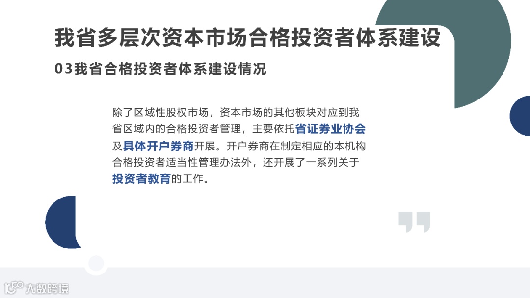 上一期我们为大家介绍了区域性股权市场的合格投资者体系建设情况,本期我们将为大家着重介绍我省多层次资本市场合格投资者体系建设情况。