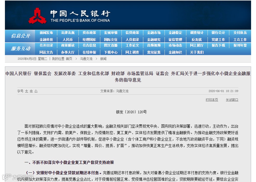 (四)落实好开发性、政策性银行专项信贷额度。开发性、政策性银行要在2020年6月底前将3500亿元专项信贷额度落实到位,以优惠利率支持中小微企业复工复产,制定本银行专项信贷额度实施方案,按月报送落实情况。