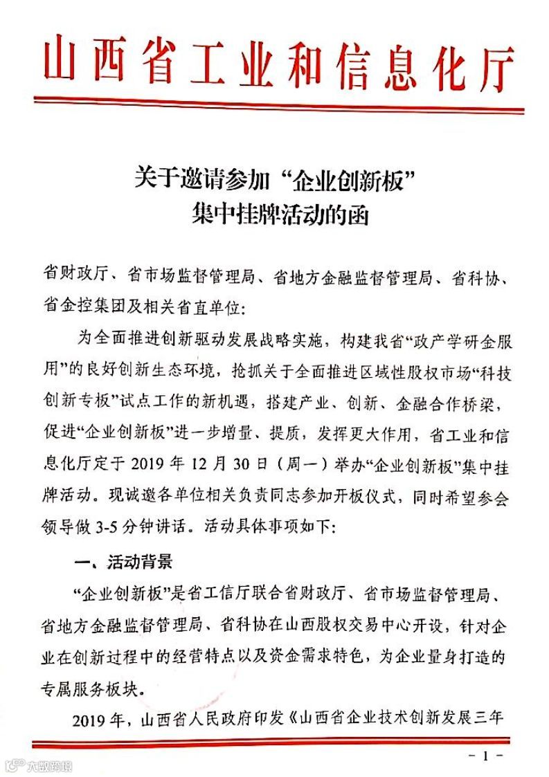 关于邀请参加“企业创新板”集中挂牌活动的函