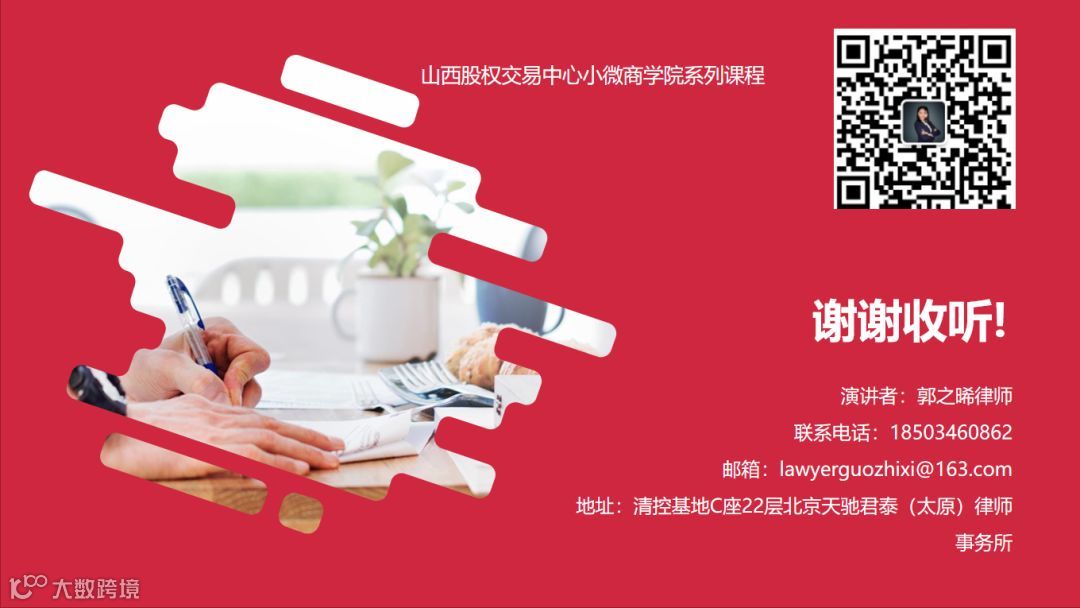郭之晞:山西股权交易中心小微商学院讲师,毕业于中国政法大学,目前就职于北京天驰君泰(太原)律师事务所,合伙人律师。