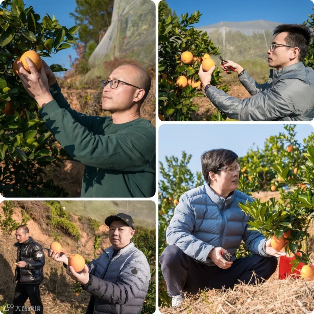 在烧窑鸡的空档,大家跟随刘总的脚步,徒步登上冬日阳光洒满的山顶,亲手采摘新鲜的脐橙,一齐体验果农丰收的喜悦。